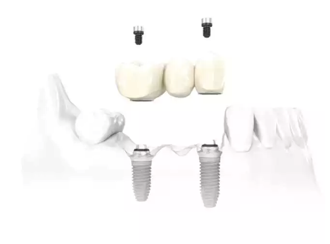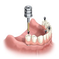 Glued (cemented) bridge: We bond the bridge to the superstructure (pilier abutment) bolted to the implant.